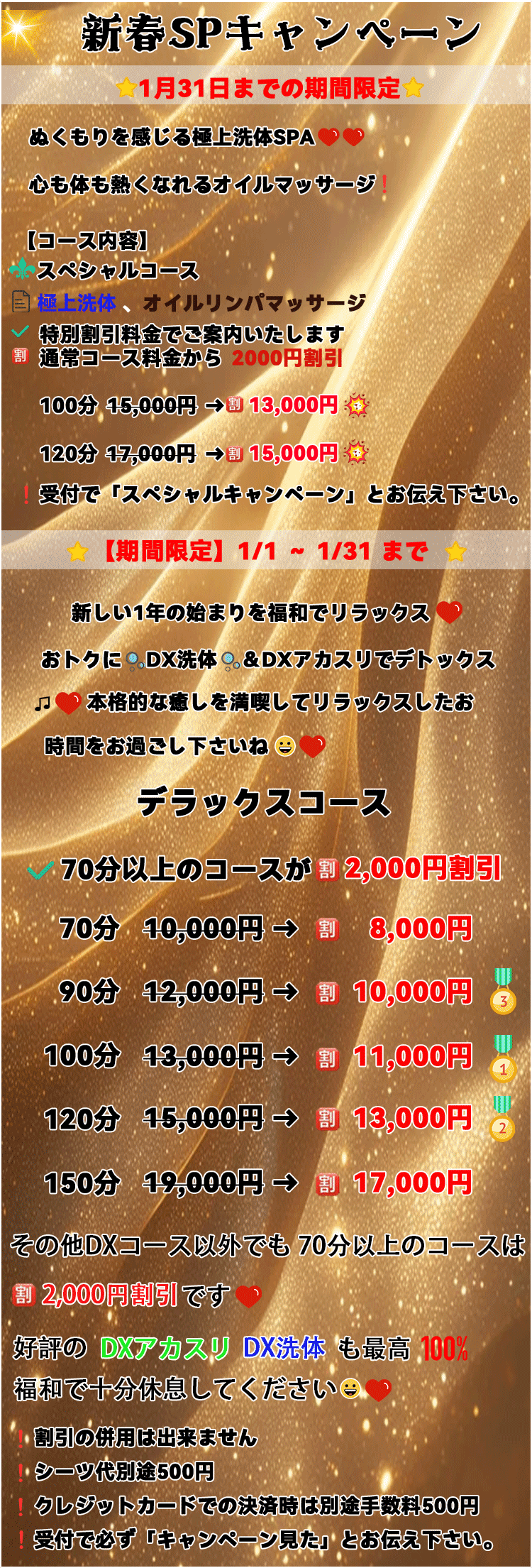 マッサージ技術+おもてなし心+高い美意識を併せ持つ厳選されたセラピストが貴様の体調・お好みに応じて究極の癒しマッサージを提供させていただきます。個室の空間で全てを忘れセラピストのリズムに身を任せ貴様自身を取り戻してください疲れた体を癒しながらストレスの発散をし、健やかな状態を保ちます